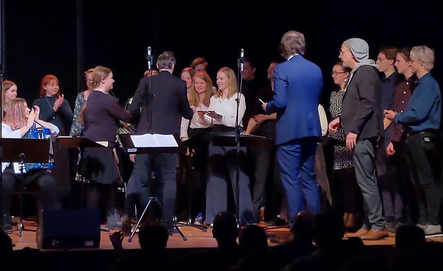 Senatsdirigent Thomas Duveneck betonte beim Abschlusskonzert des zweiten Jahrgangs, der mit einem hohen Leistungsniveau überzeugen konnte, dass das Projekt in den nächsten Jahren sicher fortgeführt und von der Senatsverwaltung für Bildung, Jugend und Familie weiterhin finanziert werde. Hintergrund der Initiative ist der Mangel an Musiklehrerinnen und -lehrern an den Berliner Schulen und der Versuch, durch das Förderprojekt qualifizierten Nachwuchs für ein Schulmusikstudium zu begeistern. Nach der Urkundenverleihung fragte Carl Parma, Vorsitzender des Bundesverbands Musikunterricht (BMJ), die jungen Musikerinnen und Musiker, wer von ihnen Musik studieren wolle und erhielt zahlreiche Meldungen. Auf die Nachfrage, wer von ihnen ein Schulmusikstudium anstrebe, waren es dann viel weniger, aber doch noch einige! Worauf Prof. Dr. Andreas Ickstadt vom Institut für Musikpädagogik der UdK Berlin und derzeit Studiengangsleiter der Studiengänge BA/MA Lehramt für die Grundschule alle Abiturienten unter ihnen einlud, sich schon im März/April 2020 für ein Lehramtsstudium zu bewerben.